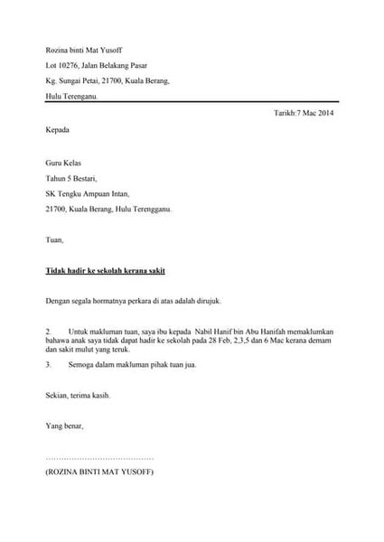 Cara Membuat Surat Rasmi Tidak Hadir Ke Sekolah Picisan Hakim Ramli